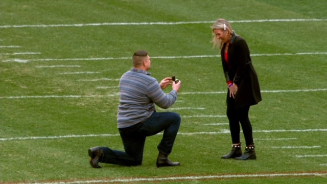 With Teller playing for the Browns, the video of the proposal was shown on ESPN as Wyatt proposed on the 50-yard line of FirstEnergy Stadium in Cleveland. Carly had suspected something was up when Teller had asked for her ring size not long before the proposal.