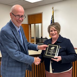 The board also recognized BCPS’s Employees of the Month for January. Greenfield Elementary School Counselor Carolyn McLucas accepted her certificate of recognition at the meeting. BCPS Superintendent Dr. Jonathan Russ read from her nomination, “Ms. McLucas is a bright light at Greenfield. She has a warm smile every morning and someone students can easily lean on. She pours her heart into supporting students in the biggest ways.”